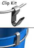 standard bucket sizes 1.25, 2 and 3 gallon buckets. Both rings hang down flat